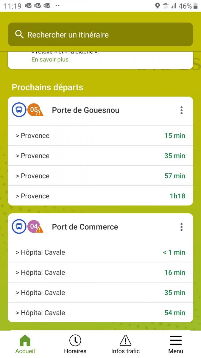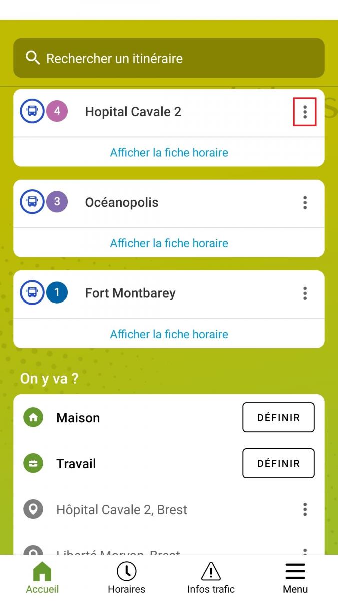 Sur la page d’accueil, supprimez vos anciens arrêts favoris (non actifs), en cliquant sur les trois points (en haut à droite).