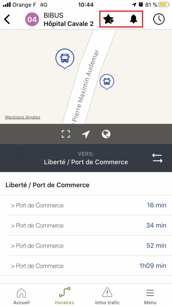 - Réactivez les alertes info trafic de vos lignes préférées en cliquant sur " la cloche " (uniquement pour iOS).