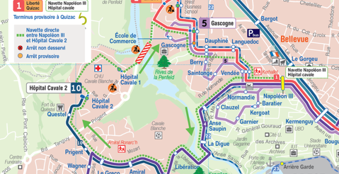 Mardi 17 mars à 14h45, le pont de Recouvrance se lève pour permettre le passage d'un bateau de la Marine nationale. Dès 14h15, le réseau de transport Bibus mettra en place son dispositif habituel.