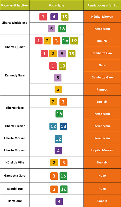 en remplacement des arrêts Liberté Frézier et Hôtel de Ville, nous vous invitons à vous rendre à l'arrêt Kerabecam.