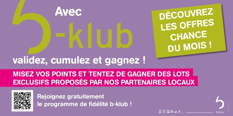 Avec le programme de fidélité b-klub, vos déplacements en transport en commun avec le réseau de transport Bibus sont récompensés.